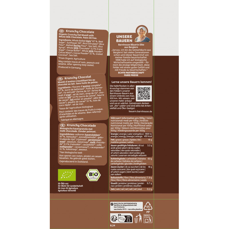 Krunchy Chocolate tastes great in milk or yoghurt but can also be used as a topping to give any flake muesli its chocolate, crispy top form.